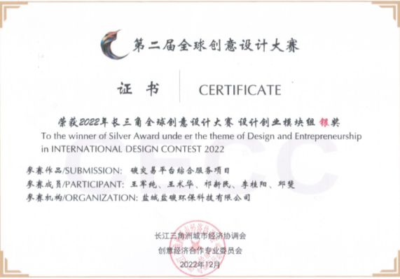 鹽城碳交易平臺獲2022年長三角全球創意設計大賽銀獎