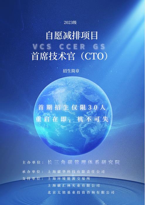 為助力各企業充分把握自愿碳交易市場帶來的機遇,進一步提高參與自愿碳交易市場的能力,長三角碳管理體系研究院聯合業界專家,推出2023級自愿減排項目首席技術官(CTO)培養項目,擬通過理論教學、移動教學、商務場景模擬、導師責任制等多種形式,幫助企業培育自愿減排項目業務骨干,助力企業全方位開拓碳資產業務。
